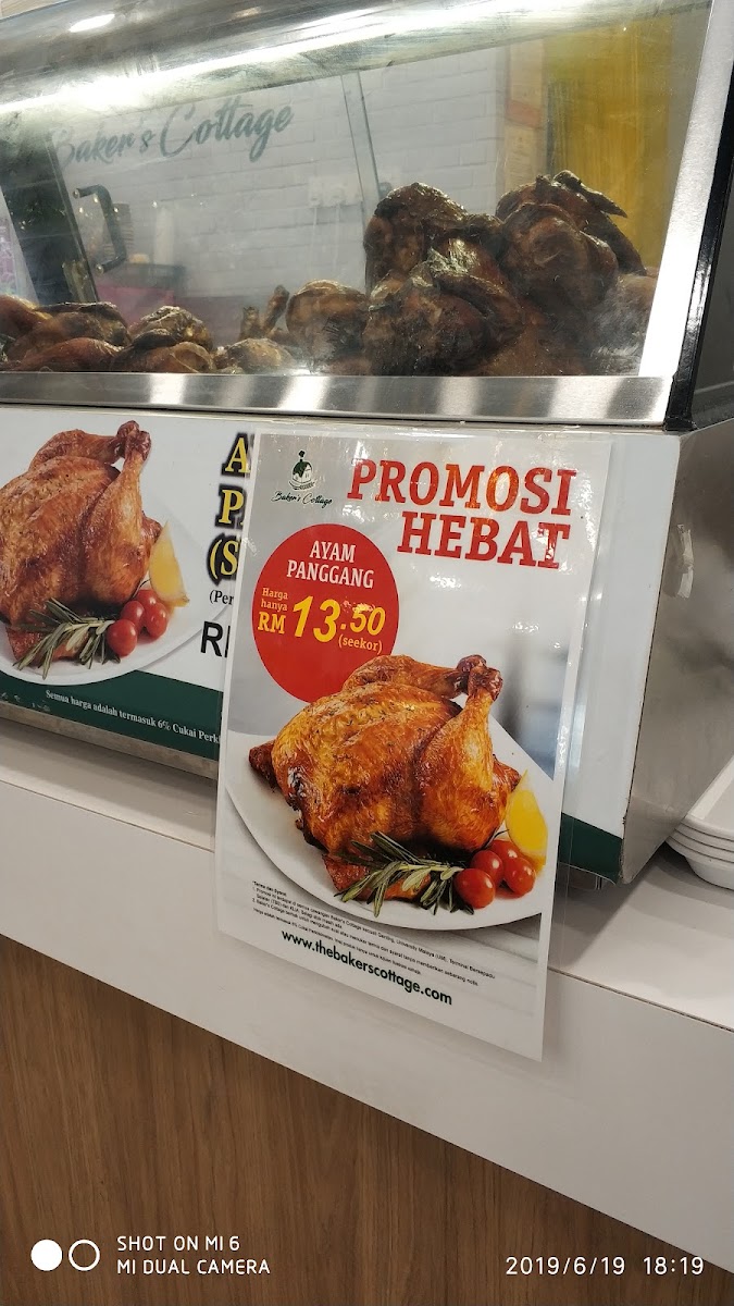 The menu at Baker's Cottage Sungai Udang features a selection of main dishes, light bites, and desserts, catering primarily to casual dining and light meal occasions. The offerings include several combo sets centered around roasted chicken, which come paired with items such as cakes, donuts, or rice. Individual food options include chicken burgers, roasted chicken rice, and tempura chicken nuggets offered in varying portions.
